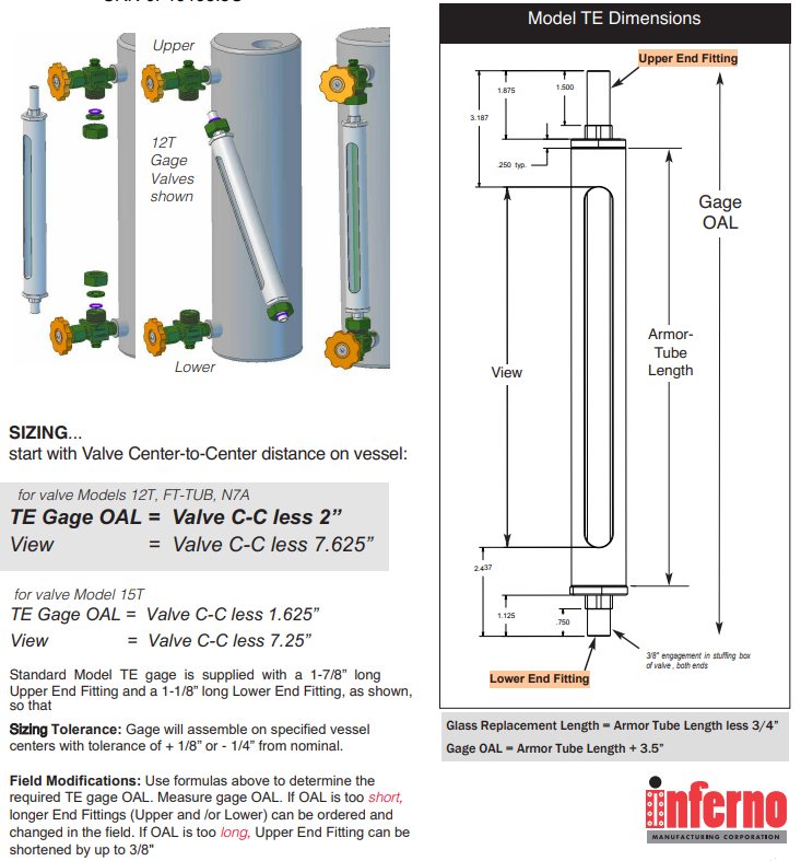 Model TE Tubular sight glass is custom made to fit on vessel centers